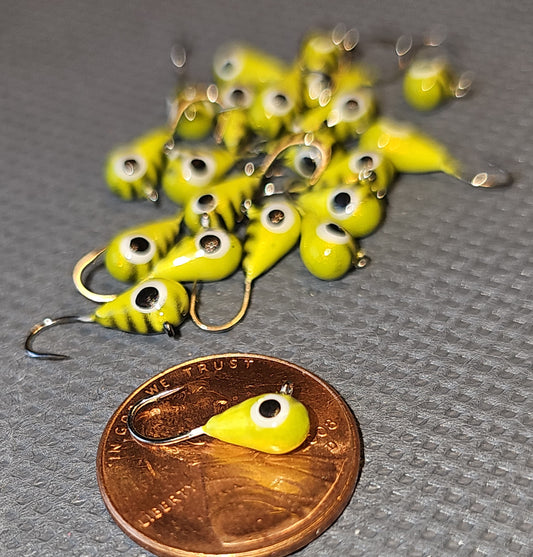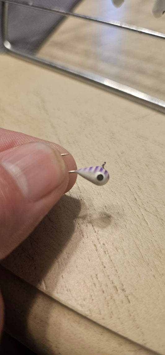 Our tungsten jigs are custom painted by us, one at a time! We only use the toughest materials! Many customers report that they have caught 50+ fish on the same jig!