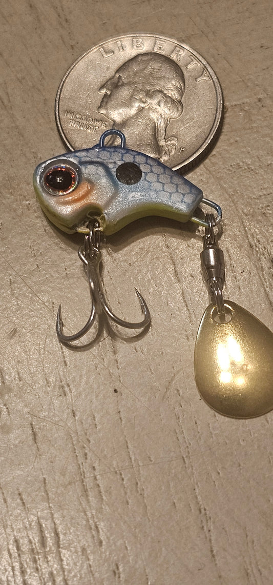 Like having two lures in one! The spinning blade on the back bring multiple species from a distance to feed! These are heavy for their size and fun to cast!