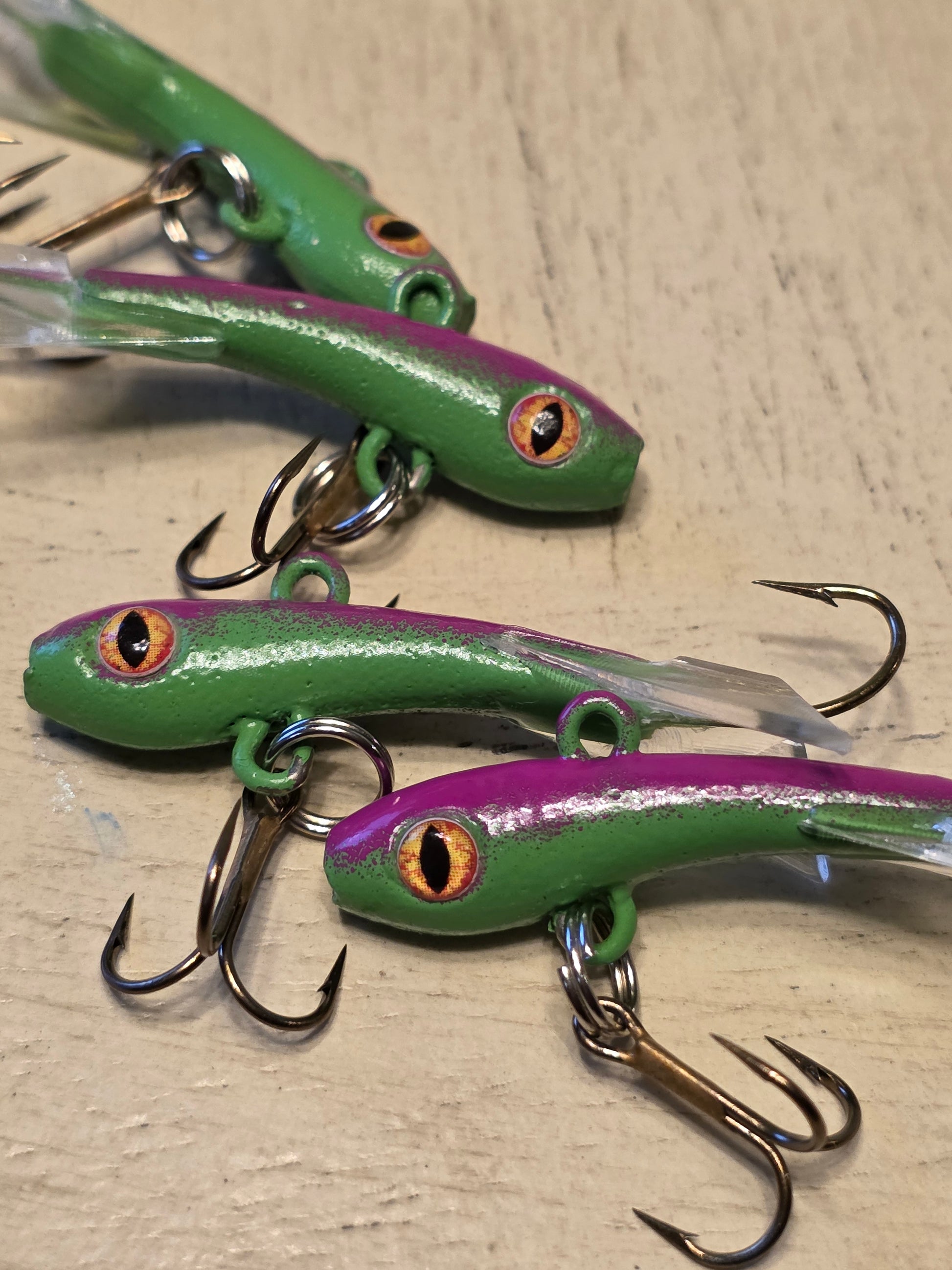 Introducing the 1/4 Ounce "Green Stoney Fish Whistler" Fishgasm Flyer, a fishing lure that glides and flies when jigged in the water. With its bright powder coated colors, they are built for durability! These are a favorite among walleye, bass, trout, and perch. Give your fishing game a boost with this quarter ounce lure.